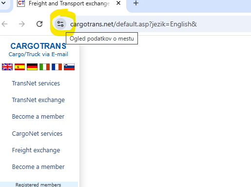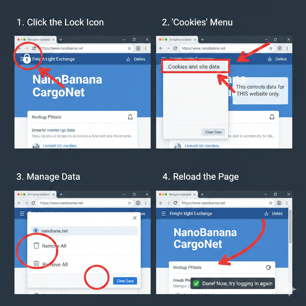 Se la pagina non si carica, per favore cancella i cookie del browser per ripristinare la connessione a CargoNet.