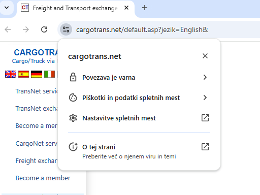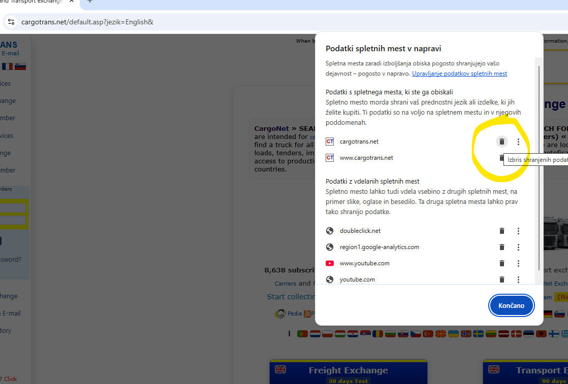 Clicca su "Gestisci dati dei siti" e rimuovi i dati per cargotrans.net.
